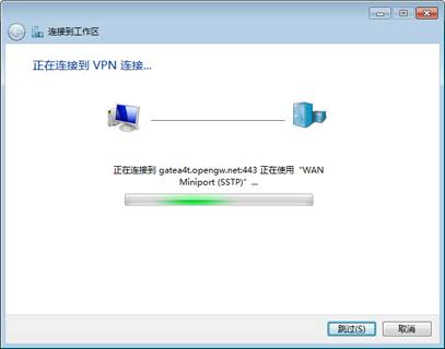 当你点击 "下一步" 后,将需要 10 - 30 分钟尝试连接一个 VPN 至 SSTP 服务器。
